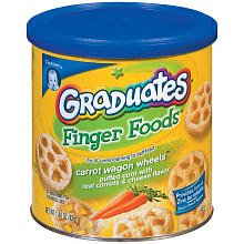 Gerber Graduates Carrot Wagon Wheels are golden corn and veggie puffs that are sized for little hands and are soft for easy chewing.